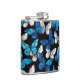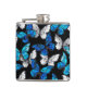 Dark Seamless Pattern with Blue Butterflies Morpho Hip Flask