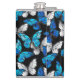 Dark Seamless Pattern with Blue Butterflies Morpho Hip Flask