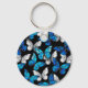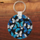 Dark Seamless Pattern with Blue Butterflies Morpho Key Ring