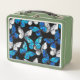 Dark Seamless Pattern with Blue Butterflies Morpho Metal Lunch Box