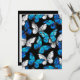 Realistic, blue and white butterflies seamless pattern on black background.