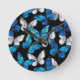 Dark Seamless Pattern with Blue Butterflies Morpho Round Clock