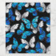 Realistic, blue and white butterflies seamless pattern on black background.