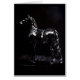 A beautiful Friesian stallion standing in the moonlight, listening to the night.