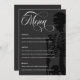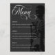 Goth wedding menu in shades of charcoal, black, and white with a skeleton and pretty fonts.