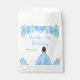 This birthday party favour bag features faux glitter bright blue floral flowers and a beautiful princess with dark skin hair and an elegant dress. This is perfect for a birthday party.