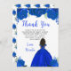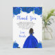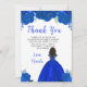This sweet sixteen thankyou card features faux glitter royal blue floral flowers and a beautiful princess with dark skin and an elegant dress. This is perfect for a sweet sixteen birthday party.