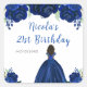 This birthday party sticker features faux glitter navy blue floral flowers and a beautiful princess with dark skin and an elegant dress. This is perfect for a birthday party.