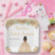 This sweet sixteen plate features faux glitter champagne peach cream floral flowers and a beautiful princess with dark skin and an elegant dress. This is perfect for a sweet sixteen birthday party.