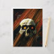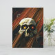 Evil skull with glowing eye sockets and a dark background spattered with streaks of orange, maroon, and black. Happy Halloween, mortals.