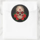 Dark Sugar Skull with Red Roses Classic Round Sticker