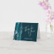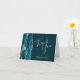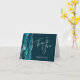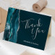 This elegant modern wedding thank you card features a teal blue watercolor agate border trimmed with faux silver glitter. The customisable text combines the words "Thank You" in silver grey handwriting script and the names of the bride and groom in italic font on a dark teal blue background.