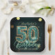 Celebrate a major milestone in style with these elegant 50th birthday party paper plates. Featuring a luxurious dark teal and gold mosaic number centerpiece, glowing bokeh accents, and sophisticated typography, these plates will instantly elevate your birthday tableware. Perfect for both formal dinners and casual milestone celebrations, this rich emerald and gold design adds a touch of modern glamour to the party decor. Easily update the template with the guest of honor's name and event date for a memorable celebration.