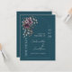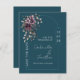This save the date pairs moody elegance with modern symmetry. A deep teal background sets a romantic tone, while the upper left corner blooms with florals in dusty purple, soft lavender, and muted sage and teal—lush and painterly against the dark canvas.