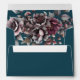 This wedding envelope blends dramatic elegance with botanical charm. The exterior is a deep teal, offering a rich, romantic foundation. Inside, the flap reveals a stunning floral illustration—layered blooms in dusty purple and moody lavender, accented by silvery gray petals and muted green foliage.