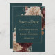 Announce your wedding with this dark teal floral gothic save the date card, designed for couples who love moody elegance and vintage charm. The deep teal background with subtle aged texture pairs beautifully with soft gold lettering and dramatic florals. Ideal for gothic, witchy, fall, or dark romantic weddings. Fully customizable with names and dates to match your celebration. Coordinates perfectly with the full Dark Teal Floral Gothic Wedding Collection.