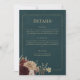 Share important wedding information with this dark teal floral gothic details card. The deep teal background with vintage texture and soft gold typography creates a refined, moody aesthetic. Perfect for gothic, witchy, and dark romantic weddings. Fully customizable to include reception, accommodation, and website details. Coordinates seamlessly with the Dark Teal Floral Gothic Wedding Collection.