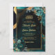 Dark Teal Gold Floral QR Code Muslim Wedding Invitation