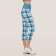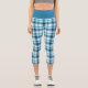 Dark Teal Light Blue White Plaid Tartan Check Capri Leggings