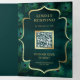 Dark Teal Peacock Feathers QR Code Wedding Tri-Fold Invitation