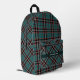 Dark Teal Plaid Pattern Chic Name Modern Masculine Printed Backpack