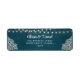 This wedding return address label features a deep dark teal background with refined rustic elegance details. Perfect for couples planning moody, elegant, or evening weddings with a touch of classic charm. The rich teal tone aligns with 2025–2026 trends favouring deep jewel colours and timeless sophistication. Ideal for invitations, RSVP envelopes, and thank-you cards. Fully customisable with names and address information for a cohesive stationery presentation.