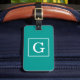 Dark Teal White Framed Initial Monogram Luggage Tag