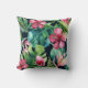 Dark Tropical Palm Leaves Hibiscus Floral Island Cushion