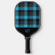 Dark Turquoise and Black Buffalo Plaid Monogram Pickleball Paddle