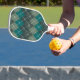 Dark Turquoise and Grey Argyle with White Stitchin Pickleball Paddle