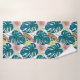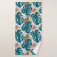 Dark turquoise monstera, delicate peach and yellow bath towel set