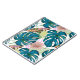 Seamless abstract pattern. Dark turquoise monstera, delicate peach and yellow flowers. abstraction, tropics, monstera, flowers, hawaii, floral, jungle, nature, art, green, peach, turquoise, composition, design, trendy, style, indian