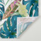 Seamless abstract pattern. Dark turquoise monstera, delicate peach and yellow flowers. abstraction, tropics, monstera, flowers, hawaii, floral, jungle, nature, art, green, peach, turquoise, composition, design, trendy, style, indian
