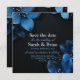 Dark wedding invitation card glitter blue flowers