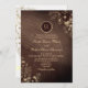 This elegant dark wood wedding invitation features a rich woodgrain background accented with delicate gold floral line art and a refined custom monogram. Paired with a coordinated photo RSVP card, this set blends romantic vintage style with modern functionality.