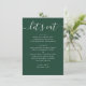 This wedding menu is designed for sit down receptions where guests are served a curated meal. The layout keeps each course clearly separated. The script heading adds a sense of character, while the rest of the text stays structured and practical. Works well for modern elegant and semi-formal weddings, especially evening celebrations, where a clean and organized menu helps guide the experience. The dark woodland green background gives the design a more refined, making it a natural fit for weddings with deeper tones or more polished styling. Pairs well with modern elegant, classic, minimalist, forest, and woodland inspired weddings. Especially suited for fall and winter weddings, as well as more formal late summer events.
