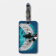 A nice luggage tag with a very nice design with two large white wings with angels, airplane, and a flight attendant upon the earth with a background Darkblue/blue sky. A cool gift!