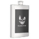 The product is a good size and came exactly as it was pictured. The lid is not attached to the flask, which could be dangerous on drunken nights... The print came out surprisingly well and looks very sharp. Would definitely recommend.