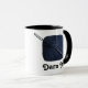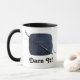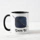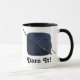 This cute sewing-themed mug sports a photo of a darning needle in a spool of dark blue darning cotton, with the phrase "Darn It!" below. Design printed on left and right sides of mug.