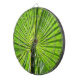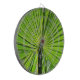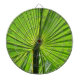 Palm frond. Green leaves fan open around the circumference of the board. Sunlight plays through the leaves with light and shadows.