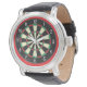 A nice design for those who enjoy playing darts, this watch features a dart board graphic surrounded by a bright red border.