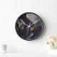 The size of the clock is dramatic and the abstract alcohol ink design is soothing and intricate at the same time. I chose the black frame that adds pop to the blue and gold design. The gold printing would be better in a slightly darker or larger font. I love it and I’m looking for just the right place in ny new apartment. I would recommend this clock for a personal gift or a present. I feel that the quality is excellent for the money! I’m a bit of a clock nut so I’m pretty particular about my purchases. The clock is larger in diameter than many if the clocks I have, so it stands out very well. I think a slightly darker printing color and a moderately larger size would best suit a professional decor or add more impact in a work place item.