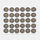 Pictured on white are dartboards with a dart in the bullseye in a repeated pattern