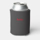 A graphic dart design by artist/designer Charmaine Paulson on a can cooler.