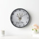 The size of the clock is dramatic and the abstract alcohol ink design is soothing and intricate at the same time. I chose the black frame that adds pop to the blue and gold design. The gold printing would be better in a slightly darker or larger font. I love it and I’m looking for just the right place in ny new apartment. I would recommend this clock for a personal gift or a present. I feel that the quality is excellent for the money! I’m a bit of a clock nut so I’m pretty particular about my purchases. The clock is larger in diameter than many if the clocks I have, so it stands out very well. I think a slightly darker printing color and a moderately larger size would best suit a professional decor or add more impact in a work place item.