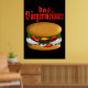 This faux-German poster of a giant hamburger is guaranteed to be a conversation starter. Choose customise to change the poster colour.