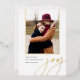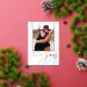 A modern and elegant holiday card featuring a vertical or portrait-orientated photo accented with gold foil trim. "Joy" appears beneath in casual hand lettered gold foil script typography. Personalise with your custom holiday greeting, family name, and the year. A chic and modern minialist choice for your Christmas 2022 cards.