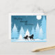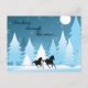 This holiday greeting postcard features two silhouette horses Dashing Through the Snow under the light of a full moon.