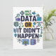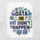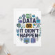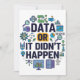 Celebrate the power of data with this fun and colourful design featuring the bold phrase Data Or It Didn’t Happen. Surrounded by charts, graphs, coding icons, and research symbols, it’s a playful yet smart nod to the world of analytics, science, and technology.