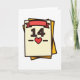 This card features a stylized calendar-like page centered on a white background, with an off-white sheet outlined in dark brown for a cozy, date-night feel 🥰. Large “14” numerals sit in the middle in warm brown, drawing your eye like a day circled on the calendar. Beneath the numbers, a bright red heart ❤️ appears with small dash marks on either side, like a little note of affection tucked under the date. Across the top edge of the page, a red banner stretches horizontally, suggesting an announcement pinned up for someone special. Behind the main sheet, layered pages peek out in goldenrod and amber tones, adding depth along the right side and up at the top-left corner. The simple shapes and warm palette make the scene feel like a quiet reminder of a shared plan, as if two people are counting down together. The text is minimal and centered, with the “14” in brown and the heart in red, while the stacked papers create warm yellow edges behind the cream page.